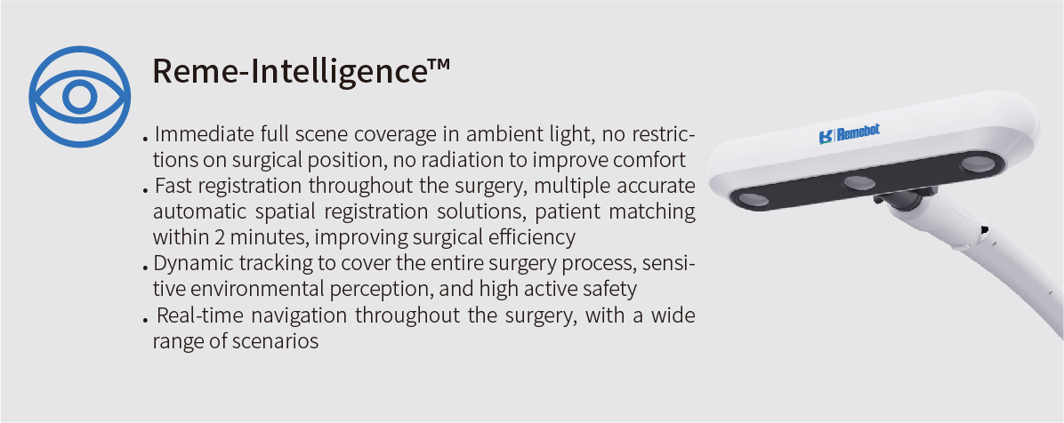 Q:How does Reme? to implement its functions inA:The Neurosurgical Navigation and Positioning System integrate image processing and surgical planning, automatic positioning and navigation, and a multi-functional surgical operating platform, which can assist surgeons to perform nearly 100 types of surgeries in 12 categories in a minimally invasive, precise, and efficient manner.