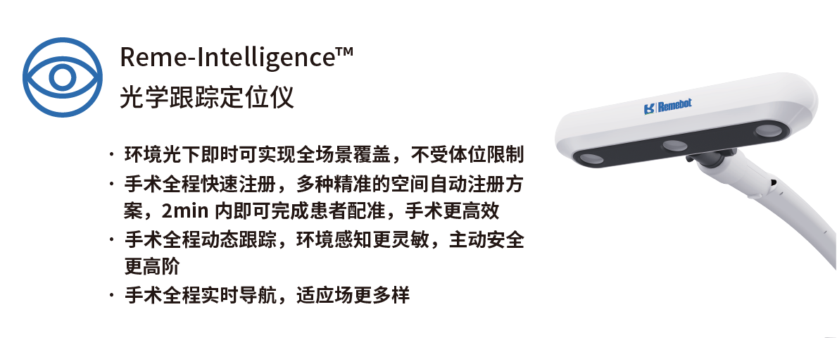 Q:What is the function of the optical tracking locator equipped with Reme??A:The optical tracking locator automatically and accurately identifies the positioning markers developed by Reme® and establishes a one-on-one mapping between the 3D model in the software and the natural scene to achieve accurate navigation and positioning.