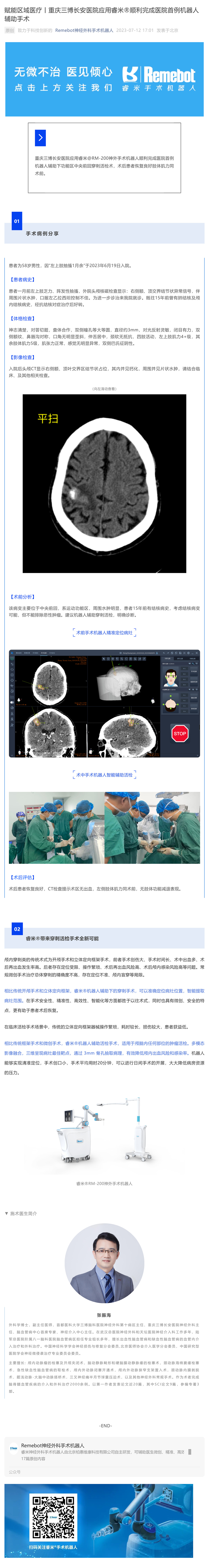 賦能區(qū)域醫(yī)療丨重慶三博長安醫(yī)院應(yīng)用睿米?順利完成醫(yī)院首例機(jī)器人輔助手術(shù)